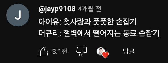 네 맘 가는 그대로 지금 내 손을 잡아그냥 내 손을 잡아 지금 내 손을 잡아아이유가 부른 '내 손을 잡아'를 프레디 머큐리의 목소리를 학습시켜 커버시킨 곡이다.최근 이런 AI를 이용한 커버곡이 쏟아지고 있는 가운데, 내가 들어본 AI 커버곡들 중 가장 노래와 음성이 잘 매치되는 곡이라 생각이 된다.댓글에도 나와 비슷하게 생각하는 사람들이 많은것 같다. 그 중 와닫고, 재밌는 댓글이 몇개가 있어 가져와 봤다.