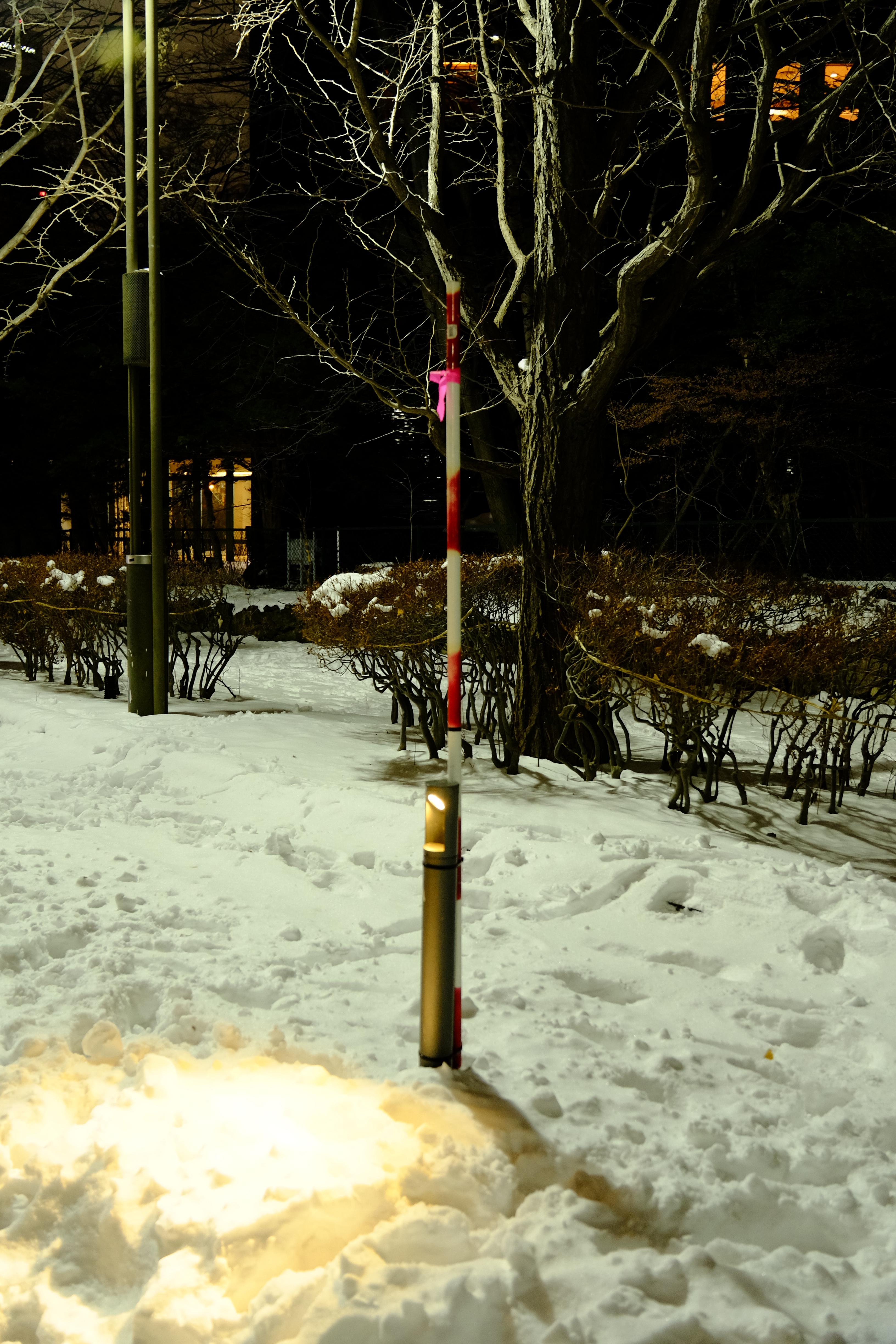 구조물 표시 폴대. 이 정도로 눈이 많이 오는 곳에서 만 볼 수 있는 구조물 같아 촬영해 보았다. 이곳은 지시등, 변전시설 등 눈이 많이 왔을 때 눈에 파묻힐만한 구조물에 사진과 같은 폴대를 모두 설치해 두었다. 아마 기계를 이용해 눈을 치우다가 시설물을 손상시키는 것을 방지하기 위해 설치한 것으로 보인다.