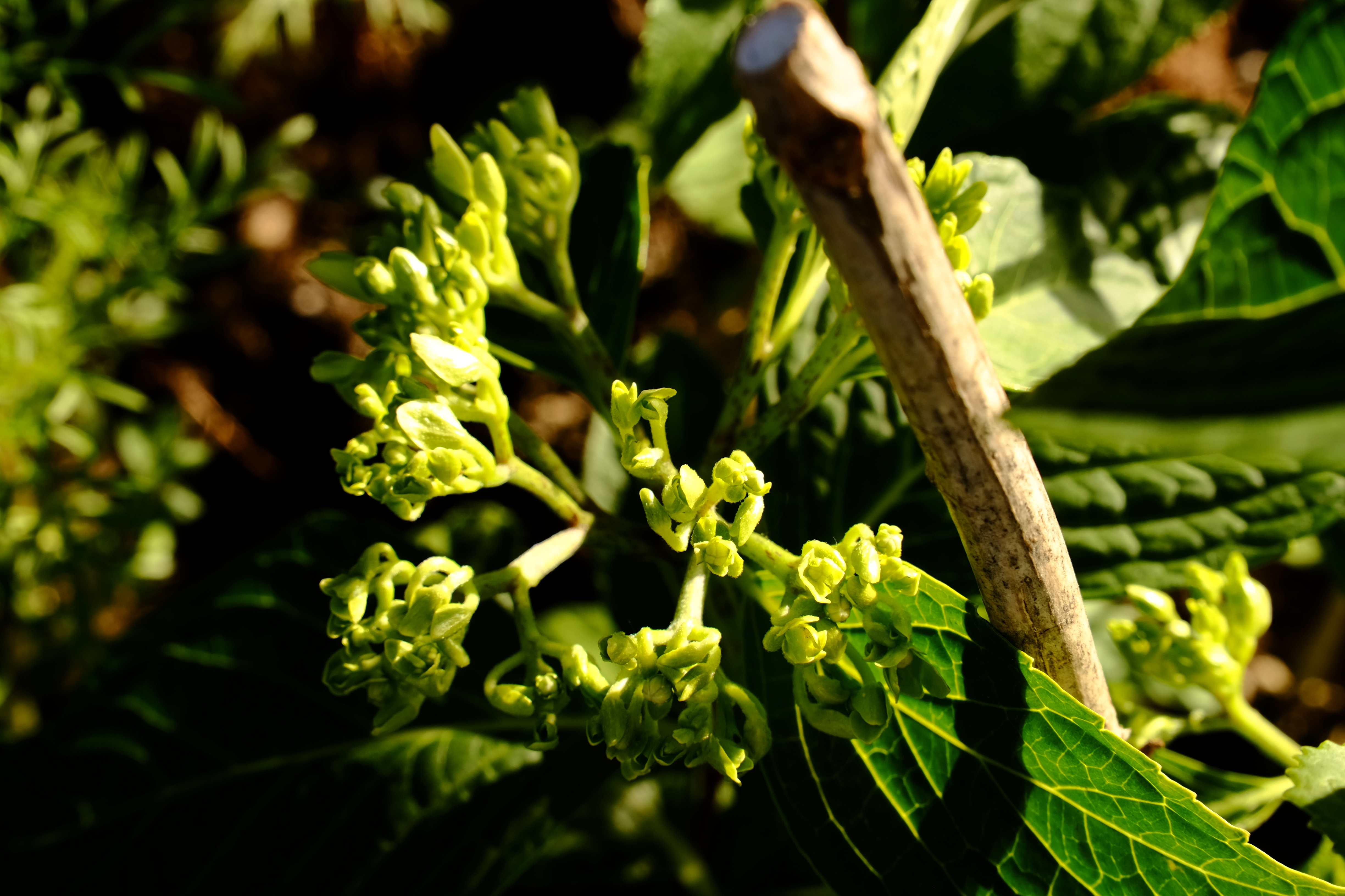 준비하는 수국과 지고있는 상사화 잎.