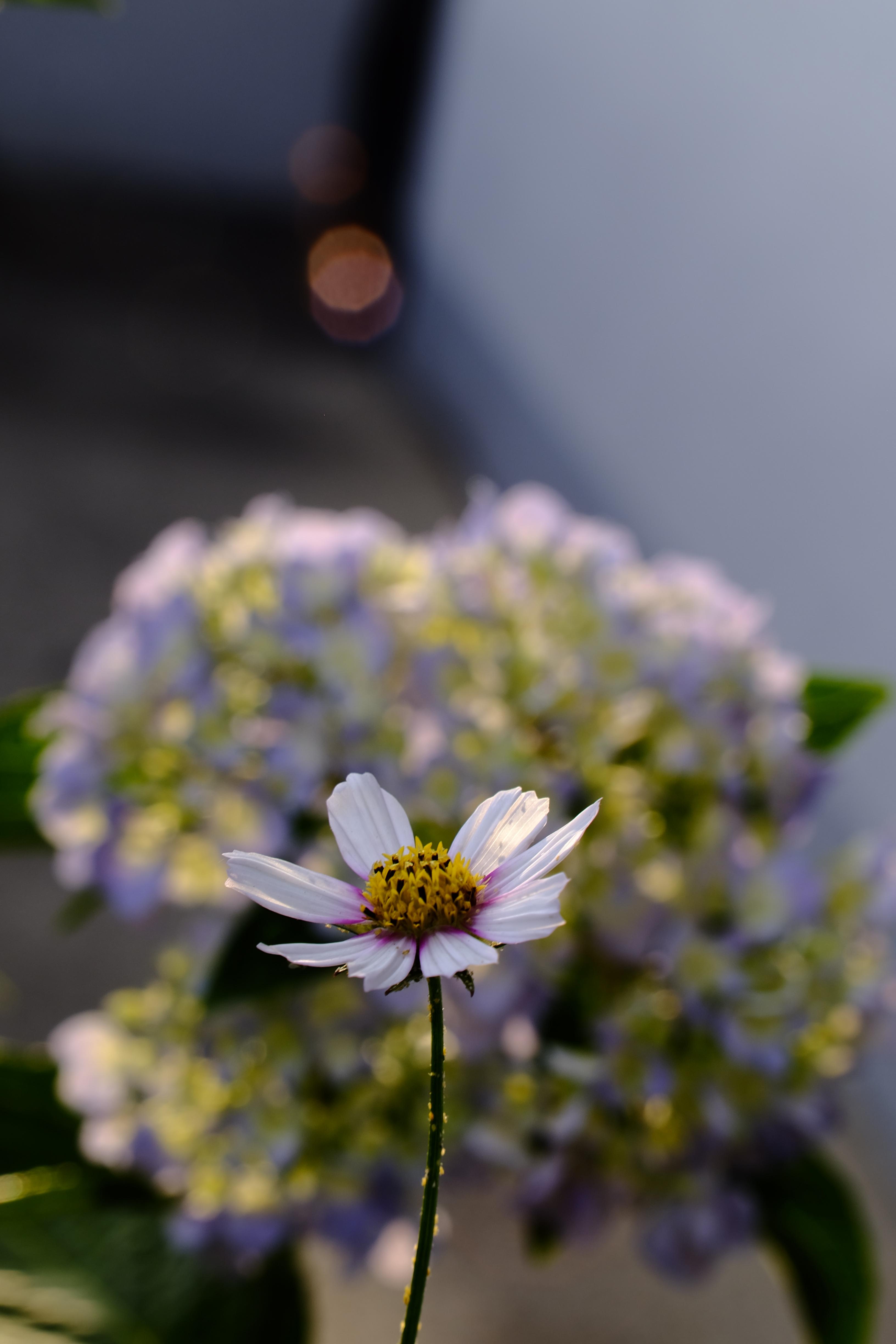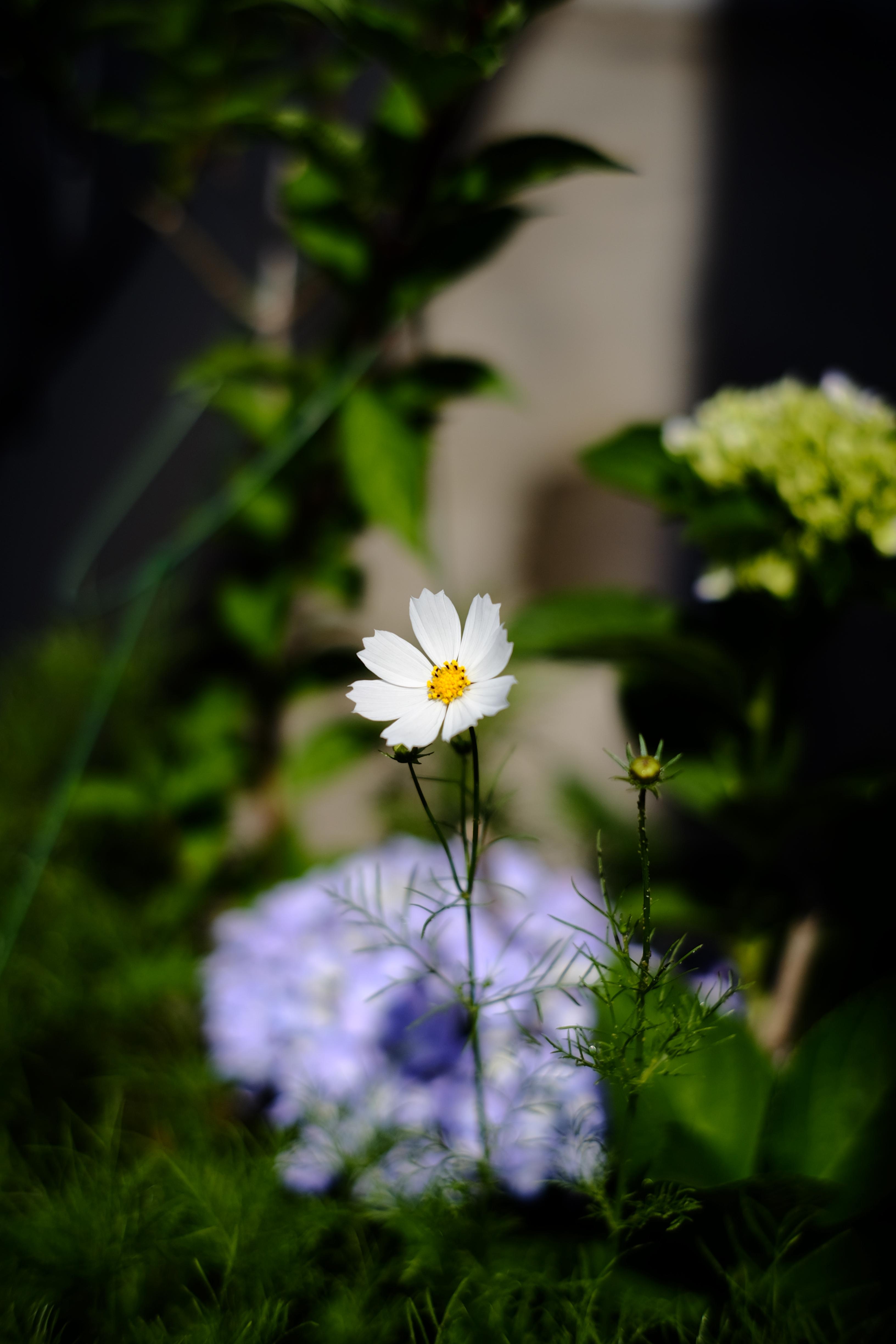 흰색 코스모스와 수국. 당시에 일조량이 풍부해 상당히 자유로운 사진 촬영이 가능했었다. 특히 꽃에 아웃포커싱을 많이 시도해 봤다. 덕분에 촬영에 대한 이해도를 조금 더 높일 수 있었다.