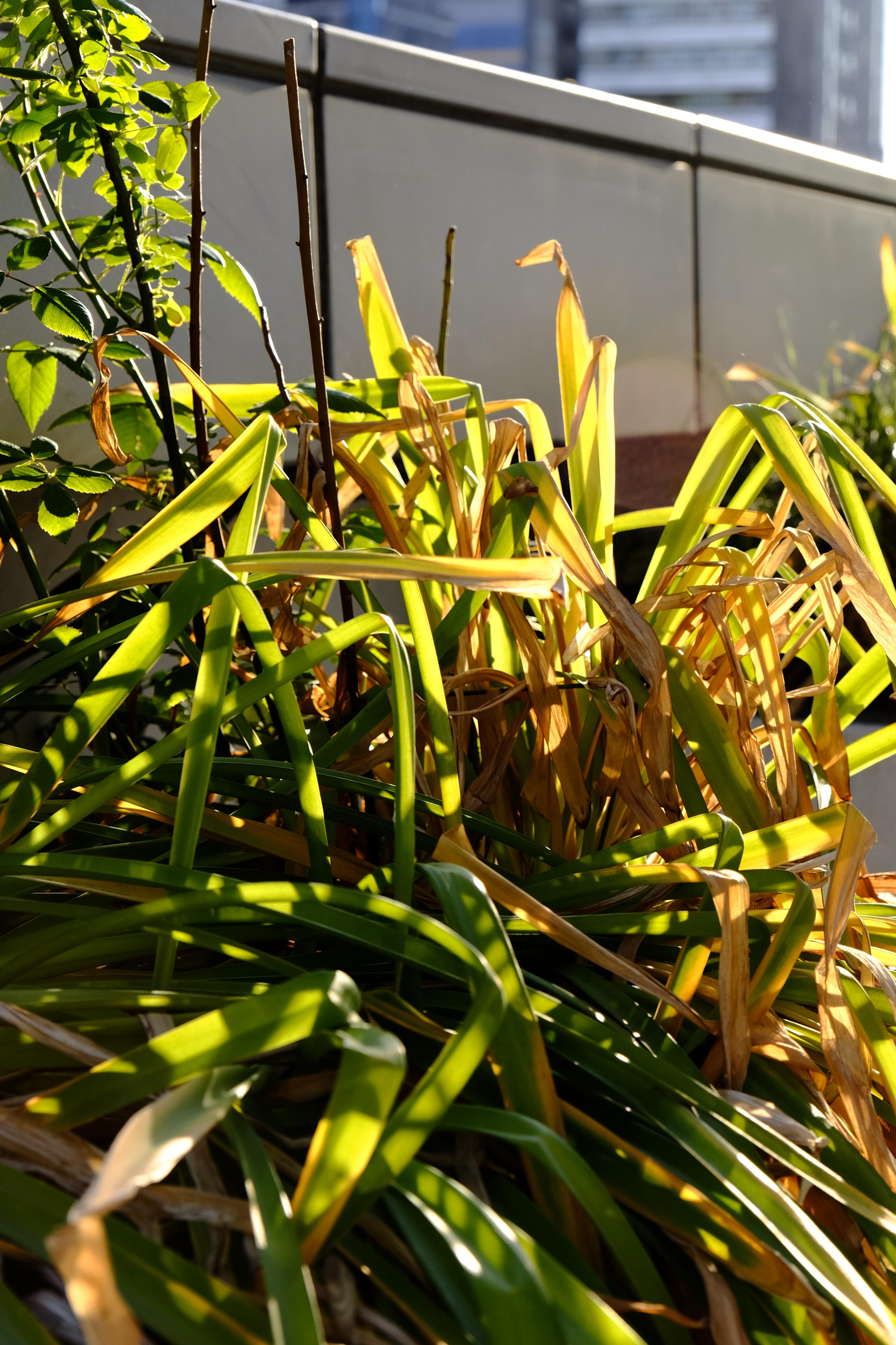 지고 있는 상사화 잎은 황금색을 띠는데 마치 들판의 벼 같은 색깔이다. 뭐.. 자세히 보면 지저분하긴 하지만, 멀리서 보면 희극이다.