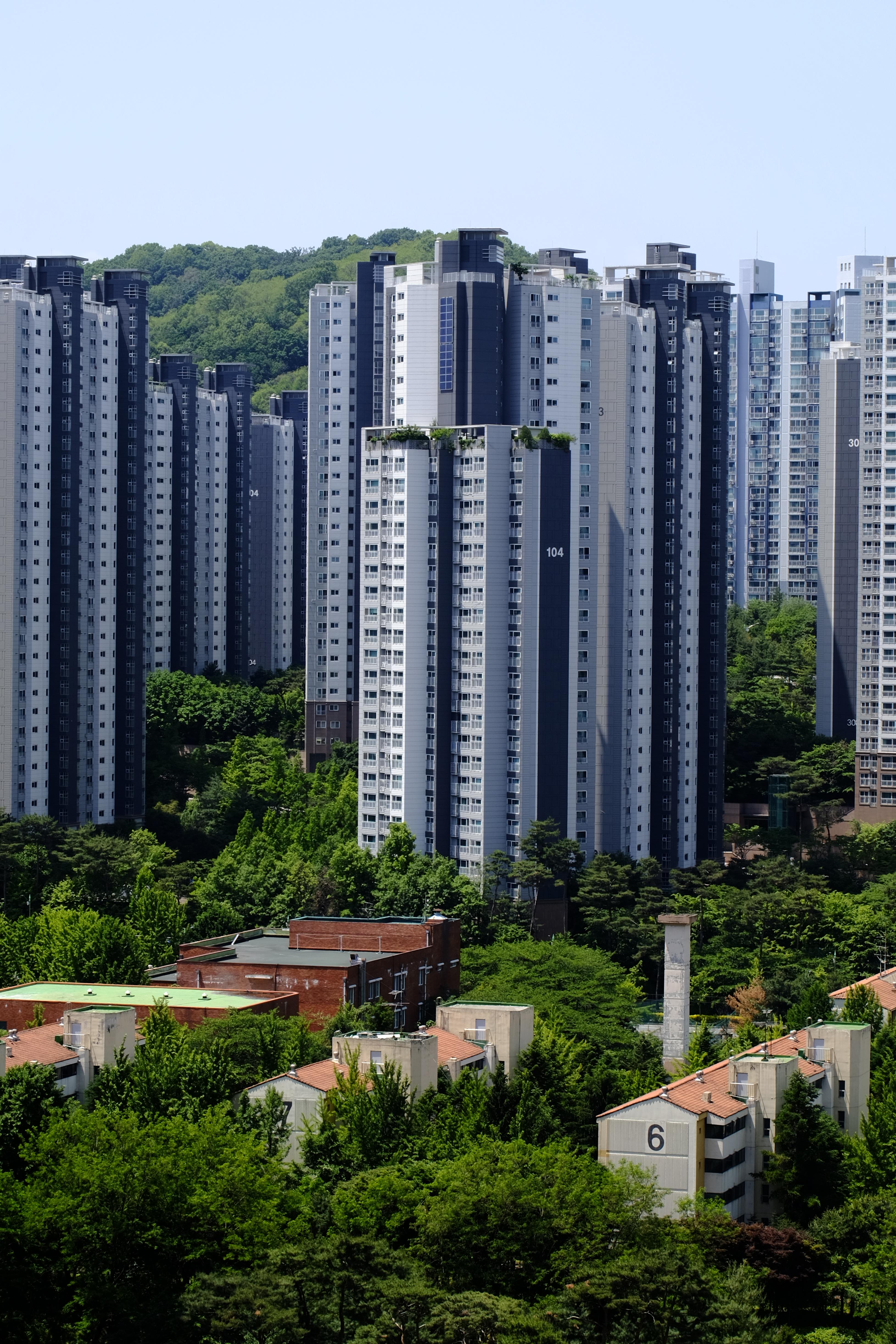 우리 집에서, 창 밖. 우리 집(본가)에서 밖을 보면 이런 풍경이 보인다. 앞에 저층 아파트는 이전에 구로, 가리봉에서 근무하던 미혼 여성 대상 임대주택으로, 지금은 사람이 살지 않는 곳이다. 비어있던지 아마 10년이 훨씬 넘은 것으로 알고 있는데, 사람이 살지 않은지 오래돼서 그런지, 저곳을 보면 사람의 때가 묻지 않은 DMZ를 보는 것 같은 느낌이다.