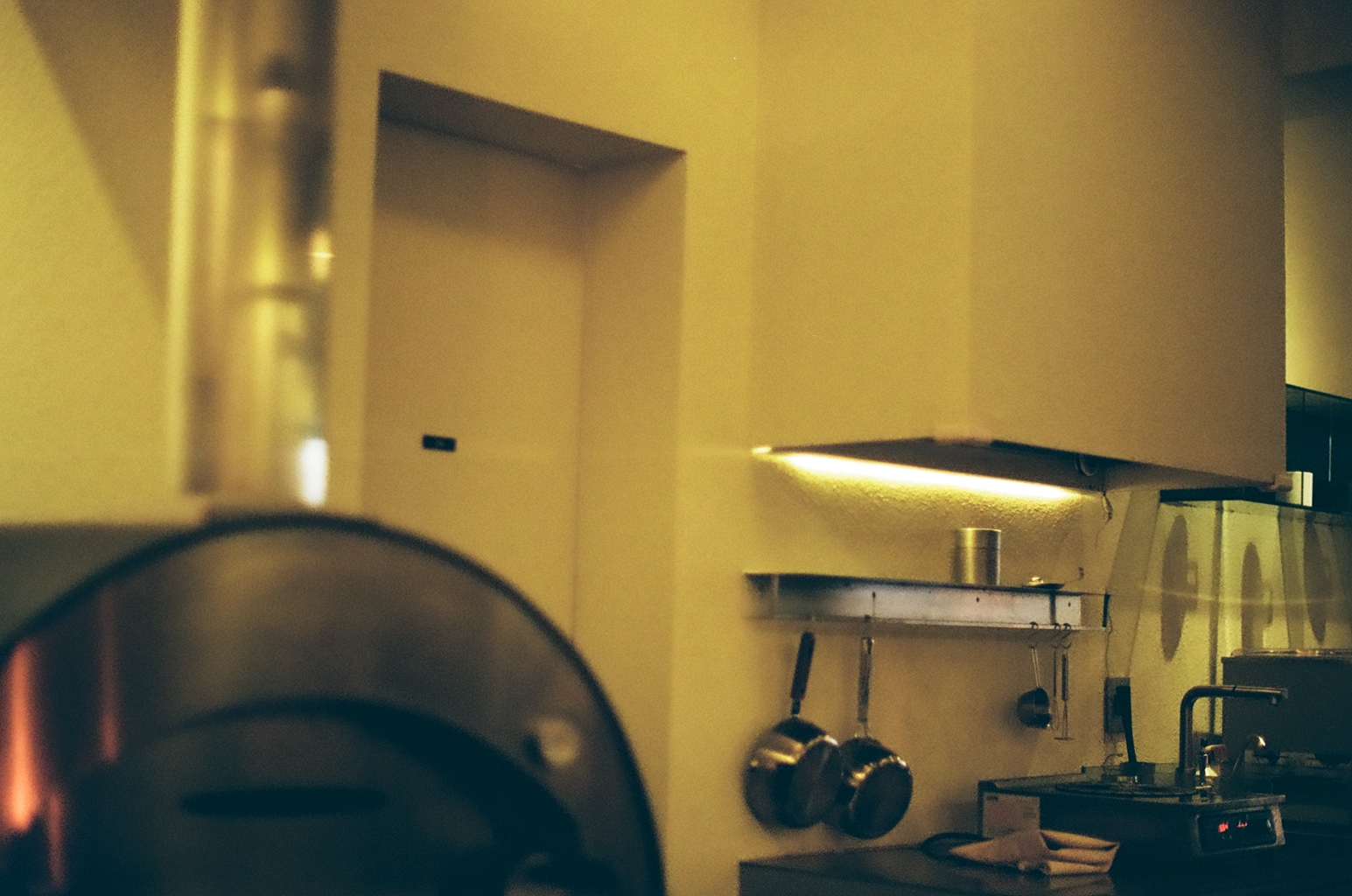 내부 주방. 내부 주방의 모습을 찍은 사진인데, 상당히 노르스름하게 나왔다. 내부 조명이 좀 따뜻한 색상이었던 거 같긴 하나 그랬던걸 감한다 해도 너무 노랗게 나온 것 같다. 그래도 이곳의 분위기를 잘 전해주는 사진인 것 같다.