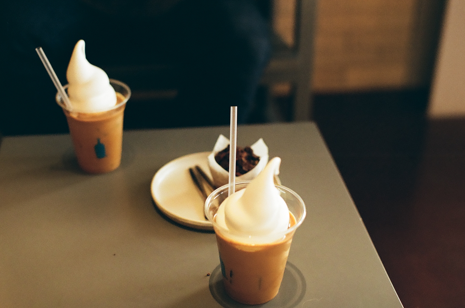 놀라 플로트, 브라우니. 자리를 잡으러 먼저 좌석이 있는 곳으로 가면서 사람들이 뭘 주로 마시는지 확인해보았다. 그중 아이스크림이 올라가 있는 게 맛있어 보여 시킨 것이 놀라 플로트였다. 블루보틀에서 판매하는 뉴올리언스라는 메뉴에 위에 아이스크림을 얹은 것이 특징이다.