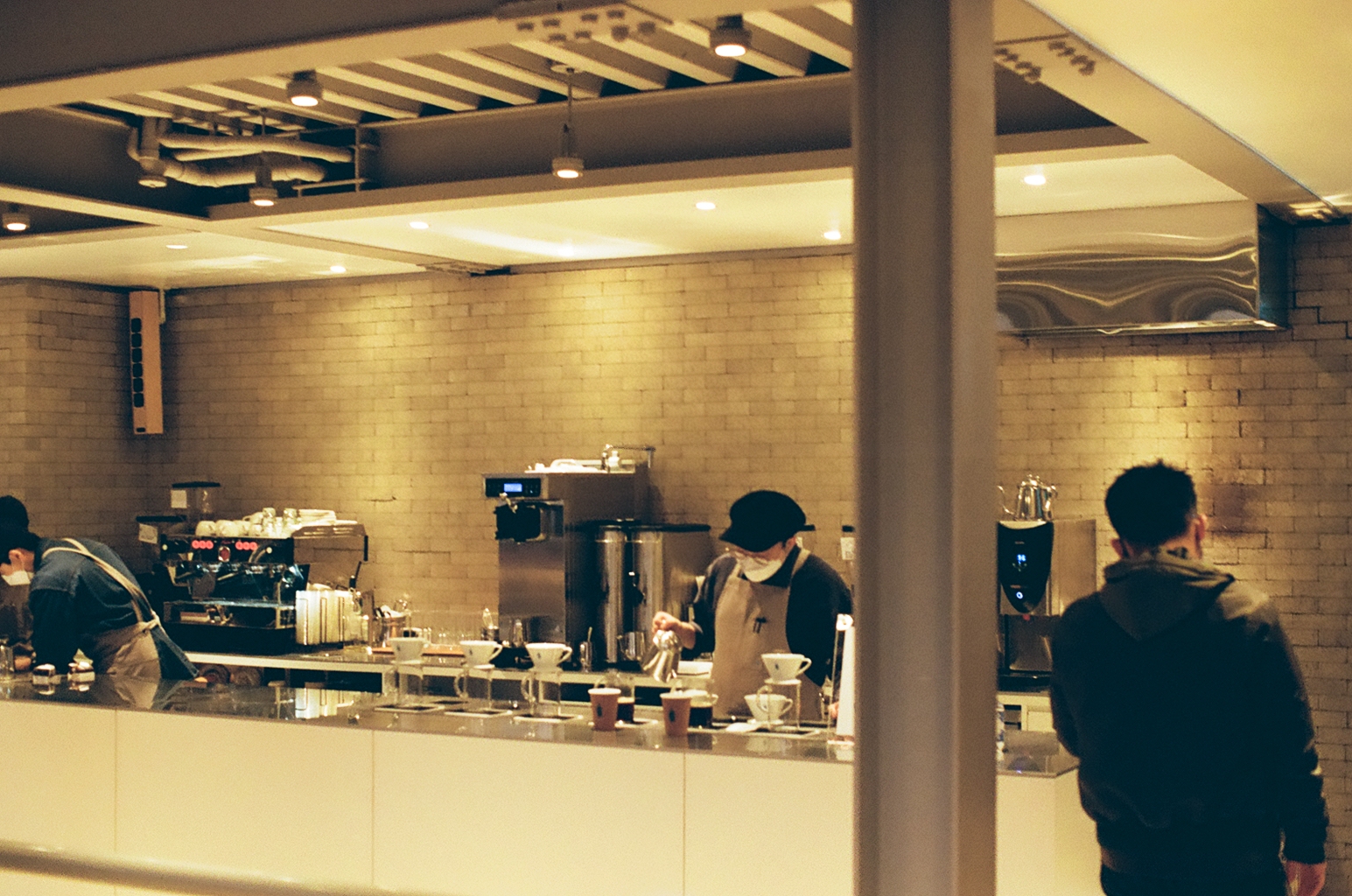 2층 커피 제조실. 나가기 전 친구가 화장실에 들린다고 해서 2층에서 잠깐 찍은 사진이다. 처음 말한 것과 같이, 1층에서는 주문만 받게 되고, 커피를 받는 곳은 2층이다. 이곳에서 만들고 가져가게 돼있는데, 사진에서 보이는 것처럼 만드는 것을 눈 앞에서 바로 볼 수 있어서 좋다.